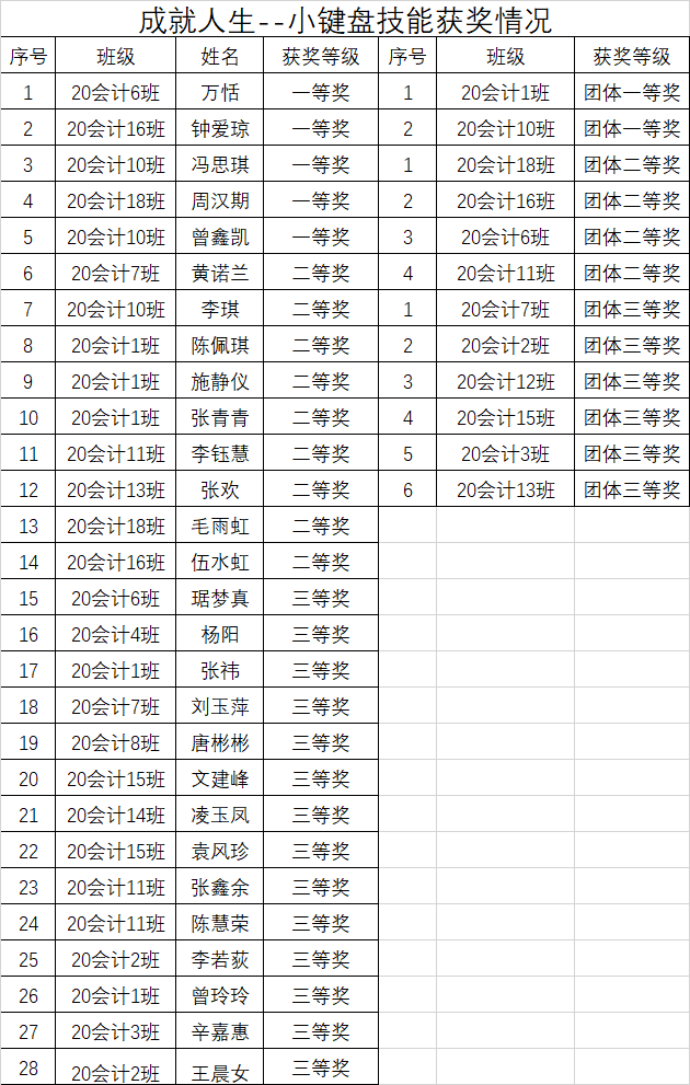 此次小键盘录入比赛为学生提供了展示技能的平台,提高了学生会计专业知识和实践操作能力,是我院“四具备”人才培养的具体举措。(附:获奖名单)