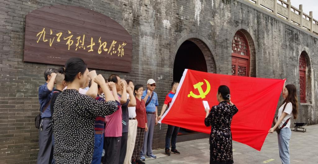首先在九江市烈士纪念馆前,离退休党总支参加主题党日活动的全体党员在鲜红的党旗下,整齐列队,高举右拳,共同宣读入党誓词,重温入党时的神圣和庄严,激励广大党员永葆共产党员政治本色,充分发挥先锋模范作用。