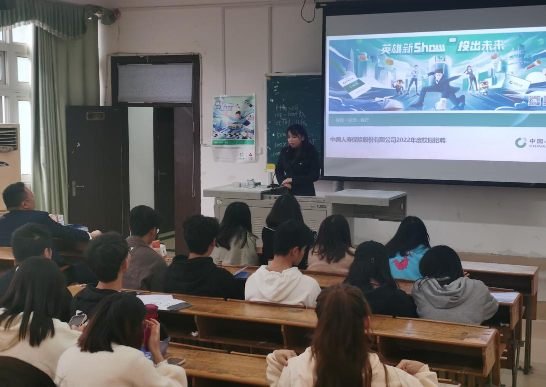 为助力2022届毕业生有效就业,进一步提高毕业生就业质量,工商管理学院于10月22日举办中国人寿保险股份有限公司九江分公司专场招聘会。