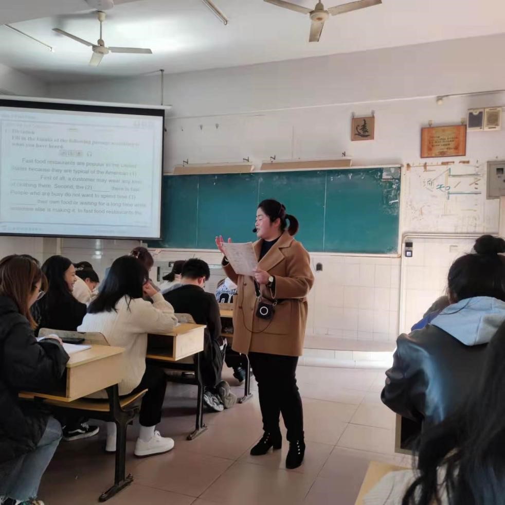 12月3日,车纹老师在405教室也讲授了一节《大学英语》课程教学示范公开课。车老师在本次网络评教问卷中学生评分较高,教学方式受到学生广泛认可。课上,车老师教学内容组织有序、教学方法运用得当、课堂节奏把控较好、教姿教态亲切自然、课堂语言幽默风趣、课堂导入循循善诱、师生互动热烈、课堂气氛轻松活泼等方面,给听课教师留下深刻印象,做出了精彩示范。