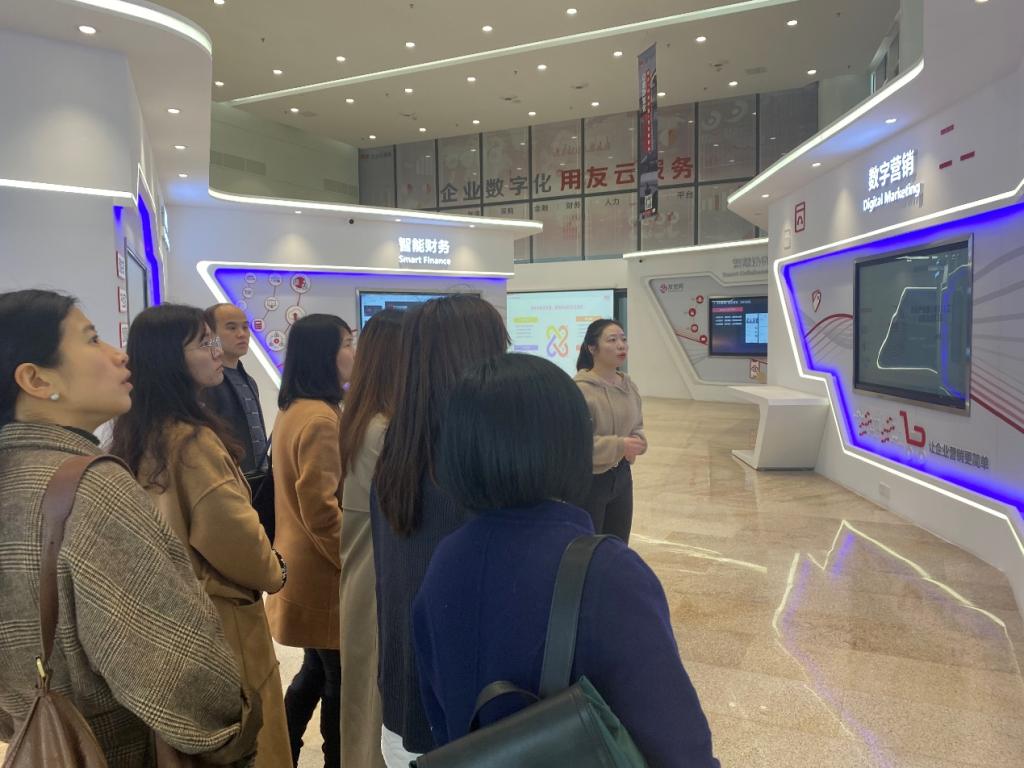 学院一行人首先参观了新道科技股份有限公司用友产业园(南昌),了解学科发展前沿,听取新道公司教育新产品介绍。