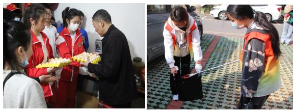 活动当天,湖滨社区广场热闹非凡,青年志愿学生、社区群众早早来到现场,大家在志愿者的引导下排好队。随后,金秋老年艺术团带领全体人员齐唱《学习雷锋好榜样》红色歌曲,激发大家的活动积极性?;疃?,我院青年志愿者负责清理湖滨社区南区卫生死角和白色垃圾。志愿者们齐心协力擦拭宣传栏、拾起落地烟头,他们不怕脏、不怕累,用实际行动践行着“烟头不落地 校社齐努力 湖滨更美丽”的口号,弘扬雷锋精神。根据活动规则,志愿者将拾起的烟头兑换成“爱心”鸡蛋,并送给了社区贫困户,进行了一次有意义的爱心志愿服务活动。