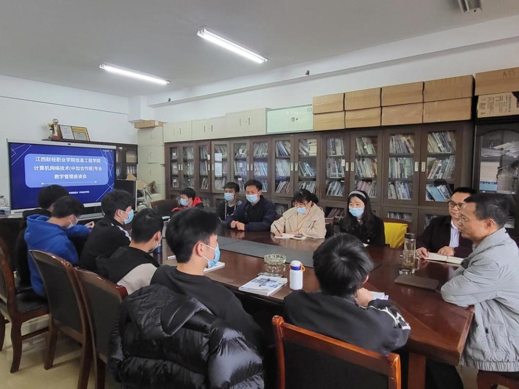 3月31日下午,信息工程学院在综813办公室召开了计算机网络技术专业中加合作班教学管理座谈会?;嵋橛尚畔⒐こ萄г焊痹撼こ氯倩鞒郑撼ひ孜娜?、计算机网络技术专业负责人熊娟老师、班主任周逸寒老师及计算机网络技术专业中加合作班全体学生出席了座谈会。