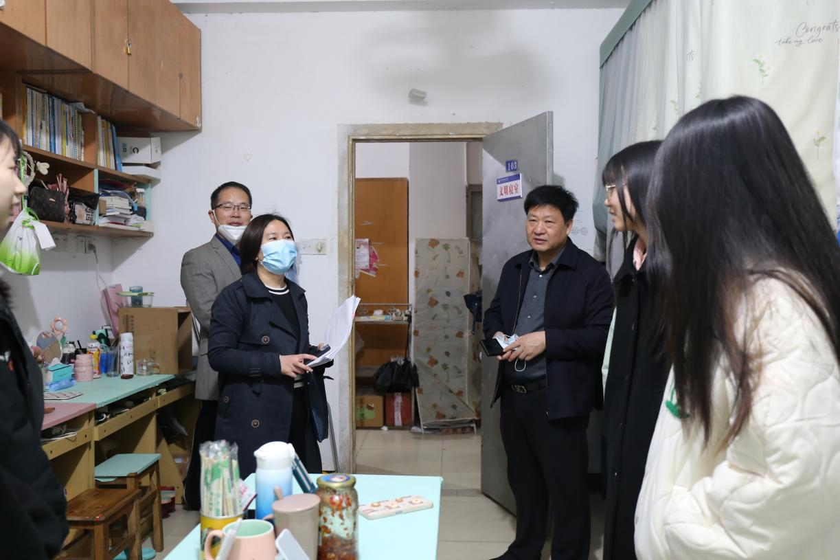 4月5日上午,我院分管领导、校党委副书记、校长刘彪文深入北四、北七、南二、南五、东一和东三学生宿舍看望学生并重点了解疫情防控期间学生在校生活、学习和思想状况,学院党总支书记武丹、院长冯弋江陪同,学院全体班主任参加巡查。