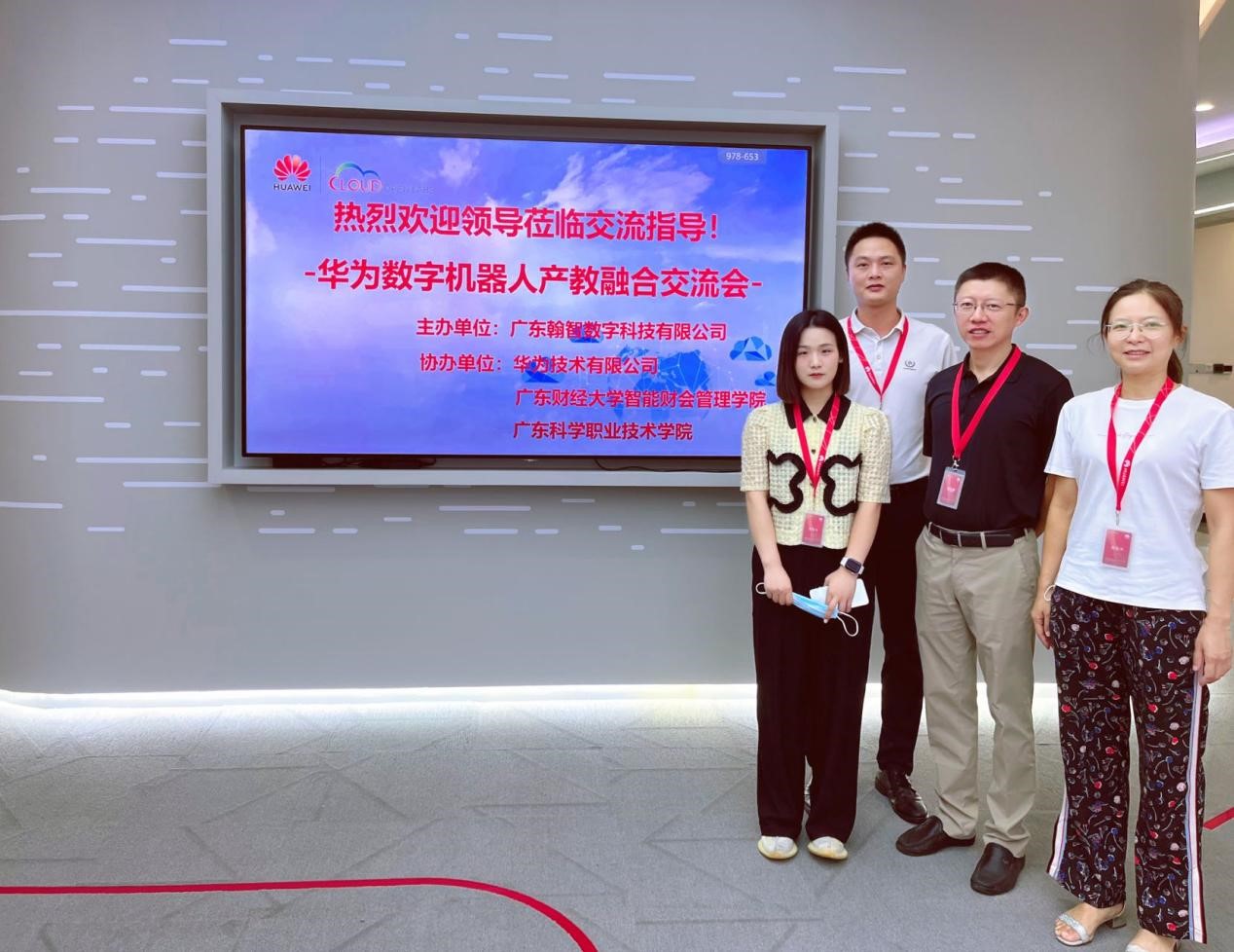 2022年7月28日,数字经济学院谭宏、李梦芸、程曦三位教师赴东莞市松山湖科技产业园区参加由广东翰智数字科技有限公司主办的华为数字机器人产教融合交流会,来自全国几十所高校相关负责人参会。