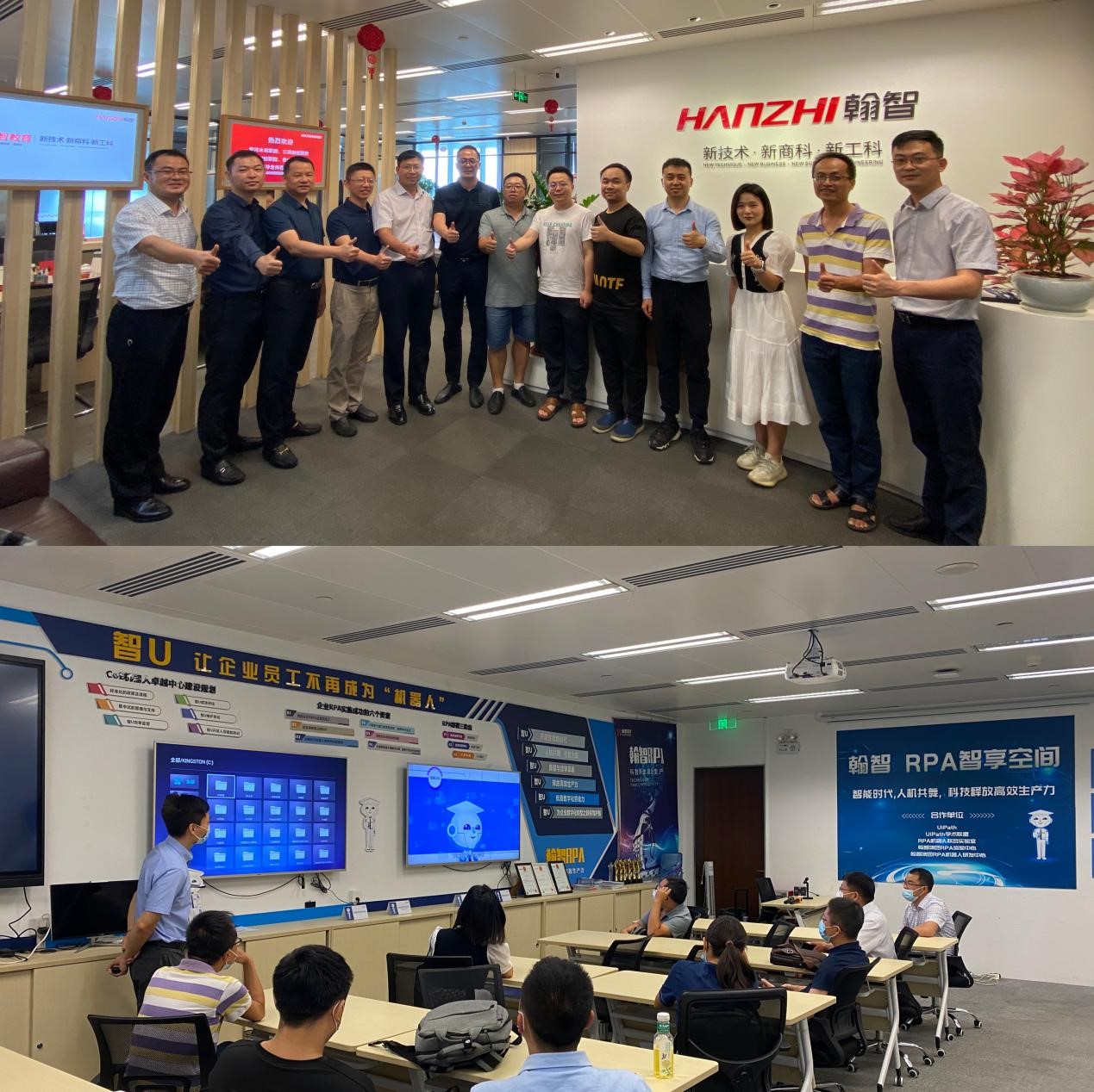 随后,在公司会议室召开交流座谈会,翰智集团高级副总裁陈少强对各位学院负责人的到访表示热烈欢迎。他向大家介绍了企业的基本情况,特别针对翰智数科的服务团队、主营业务、校企合作的优秀案例进行了详细介绍。翰智数科专家顾问翁义春就RPA数字人才的培养、如何助力数字经济发展进行了分享。与会教师也结合各自院校的实际情况就财经类专业建设、RPA数字人才培养、校企合作等问题展开了深入的讨论。