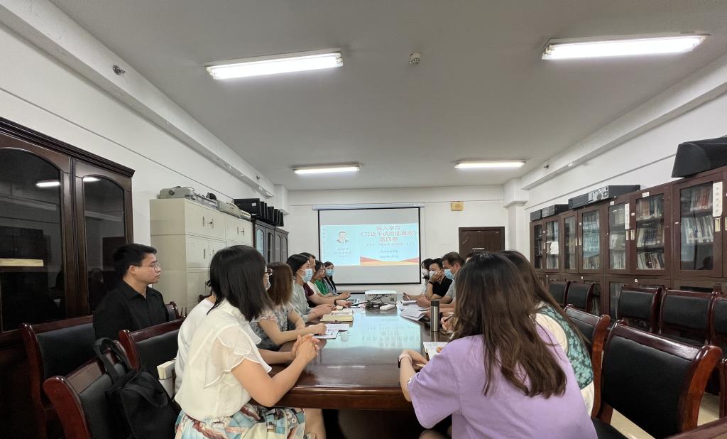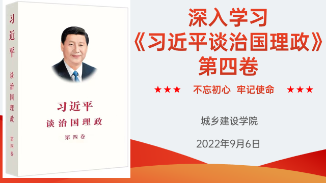 为推动学习贯彻习近平新时代中国特?社会主义思想不断走向深?,进?步夯实全体教职员工捍卫“两个确立”、践?“两个维护”的政治认同, 2022年9月6日,城乡建设学院组织专题学习《习近平谈治国理政》第四卷重要精神。城乡建设学院全体教职工参加学习会,党总支书记胡红霞主持学习会。