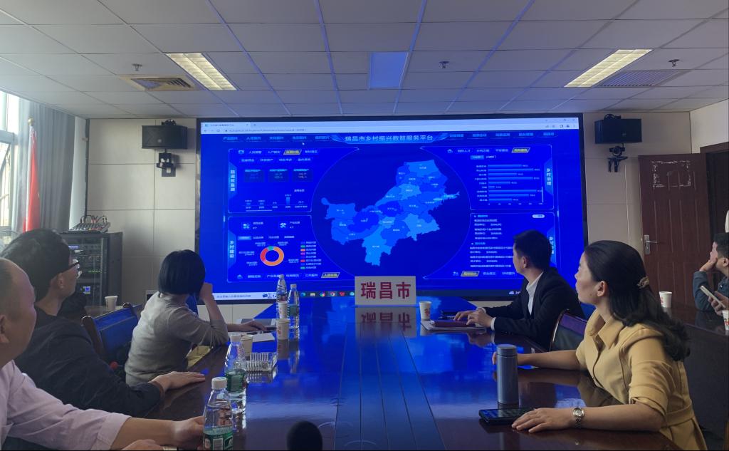 瑞昌市乡村振兴局局长曹名娥对江西省九江市都昌县县委常委江和通一行表示热烈欢迎,并介绍了瑞昌市“数字乡村”建设整体发展规划。乡村振兴推进办主任李小卫详细讲解了瑞昌市乡村振兴数智服务平台的搭建思路,并现场演示了试点村镇平台的实际运营情况。该平台包括五大场景(产业振兴、人才振兴、文化振兴、生态振兴、组织振兴)和四大??椋ǚ婪灯都觳?、数字建设、数字治理及数字发展)。双方就瑞昌市乡村振兴数智服务平台的建设进行了深入研讨。