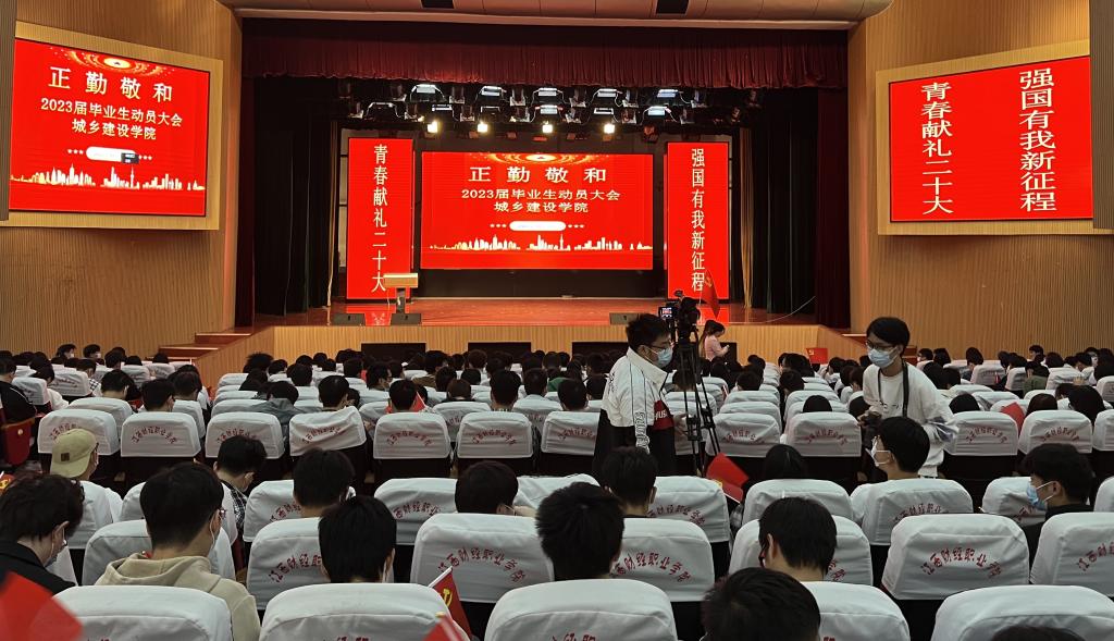 为贯彻落实党中央、国务院、省、地、校关于就业创业工作的决策部署,推动学校就业创业工作不断迈上新台阶,促进和引导2023届毕业生更充分更高质量就业,城乡建设学院于10月12日在校英才交流中心召开2023届毕业生就业创业动员大会,学院2023届全体毕业生400余人参加。校党委委员刘锋、校招就处处长周剑、校大学生心理健康中心负责人王美娟、学院党总支书记胡红霞、辅导员(班主任)及2023届毕业生等参加了动员大会,会议由城乡建设学院李捷主持。