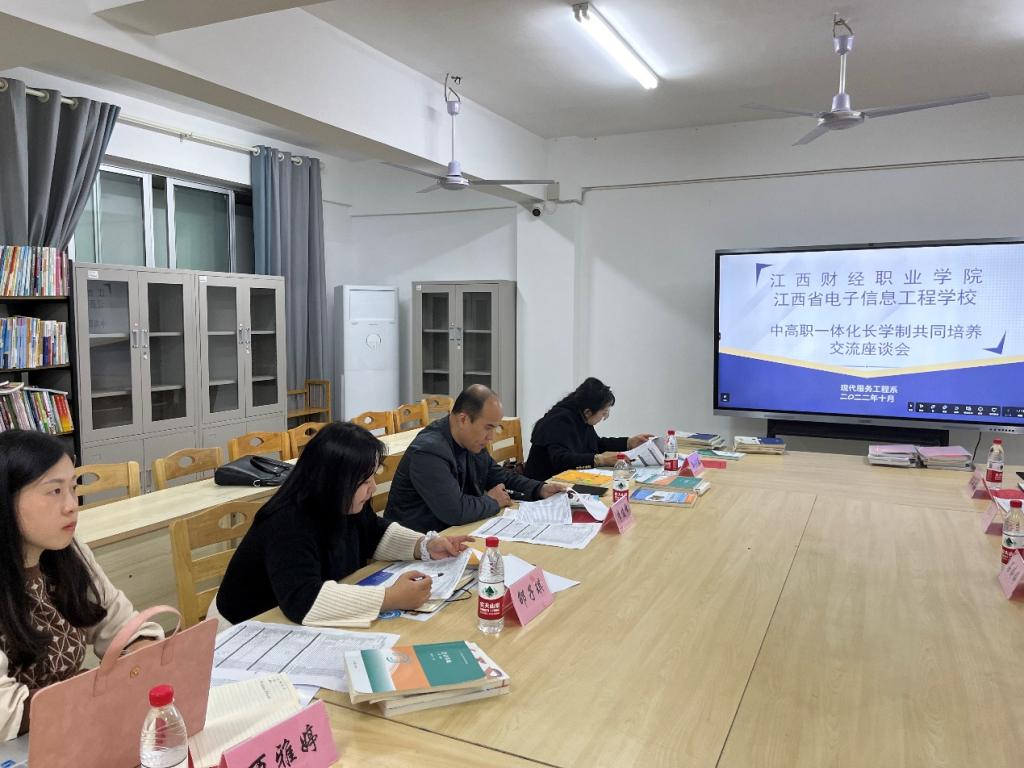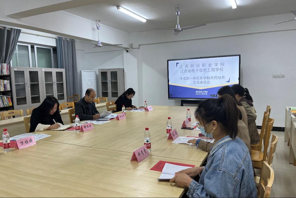 为积极推进中高职一体化长学制职业培养项目,进一步增进与中职院校的沟通与交流,10月28日,数字经济学院副院长李俊峰、统计核算教研室主任邵子琪、骨干教师孙小丽及万亚婷一行四人前往江西省电子信息工程学校就大数据与会计(业财数智化融合)专业中高职一体化长学制人才培养情况进行交流研讨。