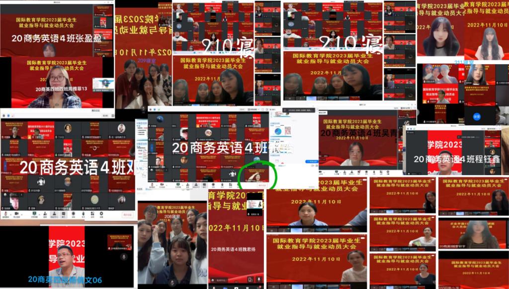 为深入贯彻落实党中央、国务院关于“稳就业、保就业”的重要决策部署,把学校11月9日召开的2023届毕业生就业创业工作推进会精神尽快落到实处,切实做好2023届毕业生就业工作,搭建毕业生与用人单位的交流平台,2022年11月10日,国际教育学院携手四家企业在线上举办了2023届毕业生首场线上专场招聘会。商务英语专业160余位毕业生参加了此次线上招聘会。