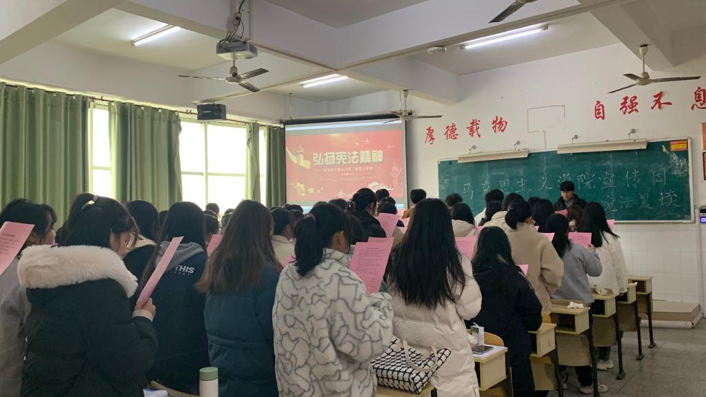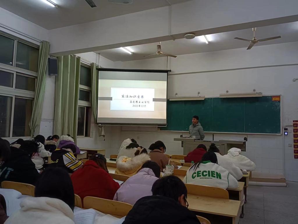 马克思主义学院虞欢老师为同学们详细介绍了什么是宪法、宪法的起源、颁布的背景、宪法的主要内容、国家宪法日的设立等,深入浅出阐释了宪法的历史沿革、基本构成、重要地位及重大意义。整个授课过程,学生们听得津津有味,并且积极踊跃回答问题,普法课堂气氛热烈。活动结束后,师生们纷纷表示此次普法活动不仅丰富了校园法治文化,更进一步增强了同学们自觉知法、懂法、守法、护法的责任意识,进一步推动法治校园建设。