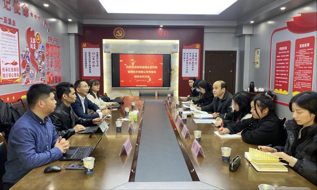 为积极响应国家关于加强校企合作、产教融合的号召,充分发挥校企双方优势,更好地为社会培养高素质、高技能应用型人才,为学生实习、实训、就业提供更多空间。2月21日下午,数字经济学院与深圳迪博企业风险管理技术有限公司举行校企合作交流会。赴我院交流的专家有深圳迪博企业风险管理技术有限公司创始人、董事长胡为民、数据产品中心总经理刘克飞、数据产品部高级产品经理王丹、数据产品部高级销售经理魏建忠。数字经济学院副院长李俊峰、内控教研室主任王萌、统计核算教研室主任邵子琪等对深圳迪博企业风险管理技术有限公司一行人的到来表示了热烈欢迎。