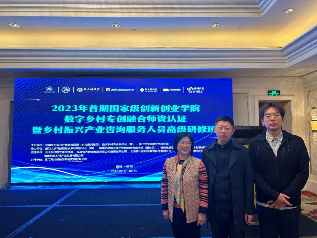 为进一步推进江西财经职业学院创新创业专项建设工作的开展,促进高校创新创业教师更新教学理念、改进教学方法、提升教育水平,2023年2月18日-19日,江西财经职业学院数字经济学院副院长谭宏及数字经济专业建设小组章清教授、陈石博士一行赴福州参加首期国家级创新创业学院数字乡村专创融合师资认证暨乡村振兴产业咨询服务人员高级研修班线下培训。