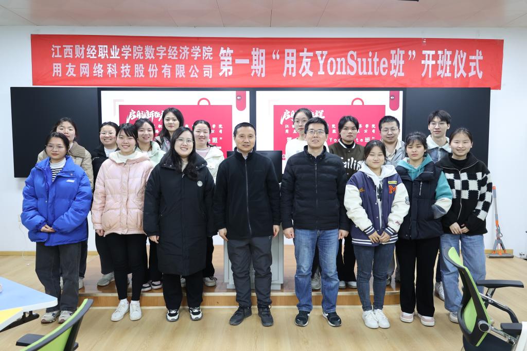 与用友公司合作开设“用友YouSuite班”是我校全面促进专业结构调整、高位推进产教融合、帮助学生高质量就业的重要举措。数字经济学院将全面落实校党委关于深化产教融合、校企合作的重大决策部署,认真抓好“用友YouSuite班”日常教学,确保教学质量,为学生实现高质量就业创造条件。