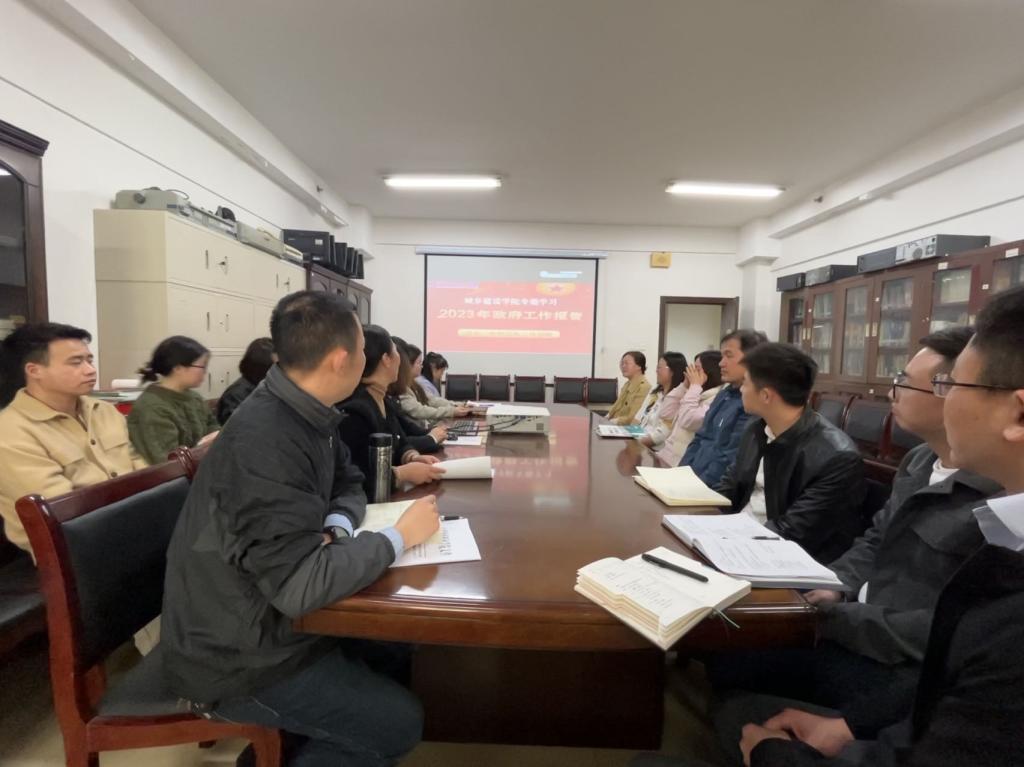 2023年3月7日,城乡建设学院在综合楼1103召开学习贯彻全国两会精神专题学习会,党总支书记胡红霞同志主持会议,全体教职工参加会议。