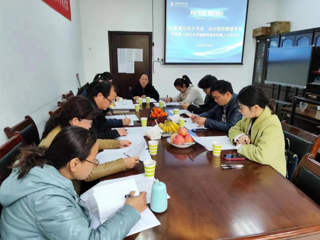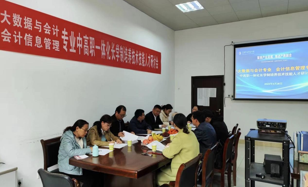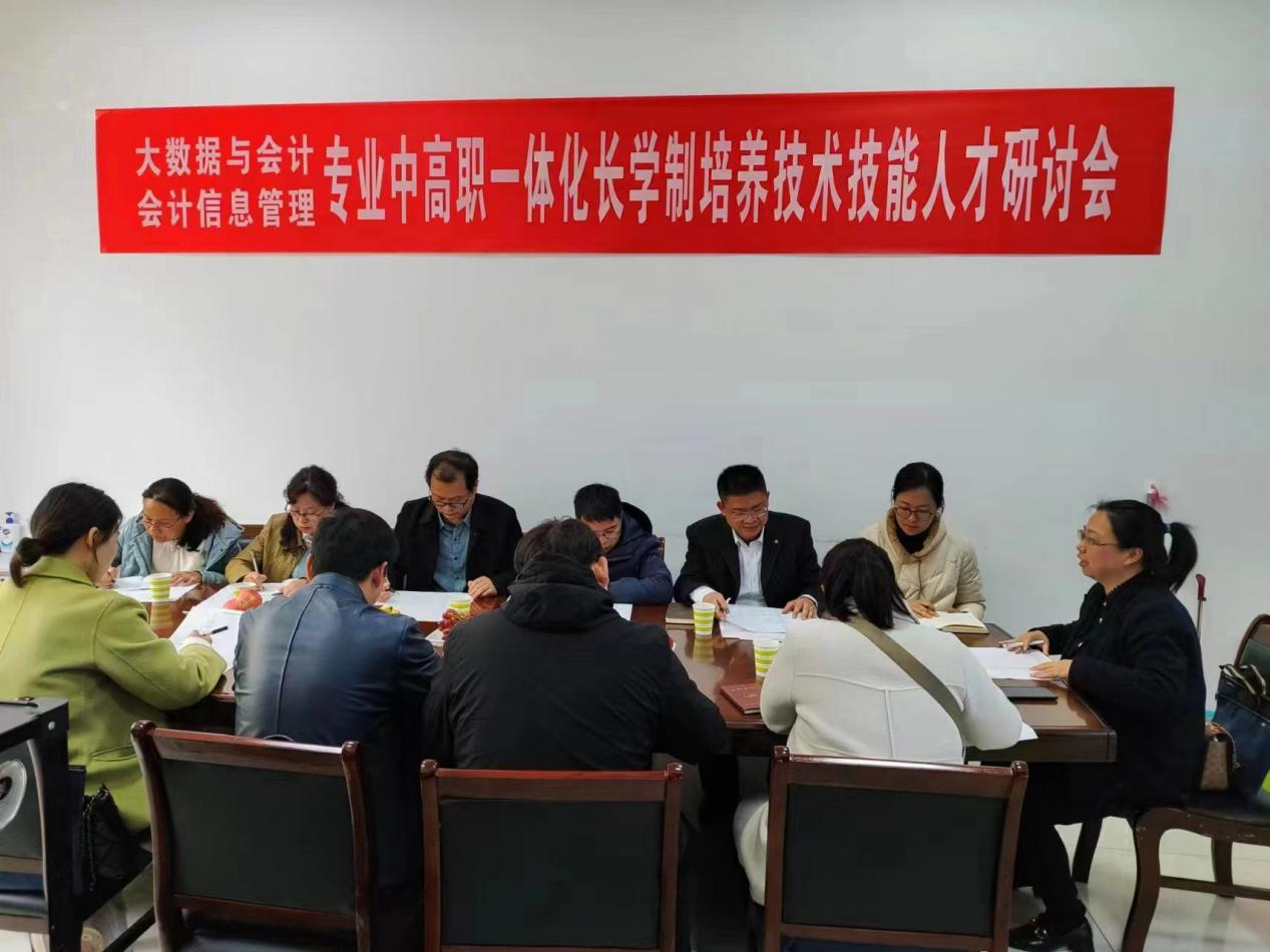 为加强中高职衔接,畅通人才成长渠道,全面提升高素质技术技能人才培养质量,3月28日下午,会计学院组织对口专业中职院???/span>中高职一体化长学制培养技术技能人才研讨会。来自赣州应用技术职业学院、贵溪市职业中学、江西省井冈山经贸学校和彭泽县旅游工业中等专科学校的领导老师和会计学院教学领导班子齐聚一堂,共同就“中高职一体化人才培养以及大数据与会计、会计信息管理两个专业的课程体系设计”进行交流研讨。