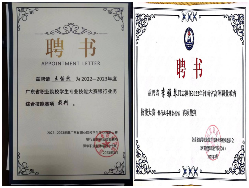 3月18日,财税金融学院党总支副书记王怡然应邀参加2022—2023年度广东省职业院校学生专业技能大赛,并担任裁判。3月24日,我院专职教师李雅琴被聘请担任2022年河南省高等职业教育技能大赛“银行业务综合技能”赛项裁判。两位教师以扎实的业务能力、高度的责任心圆满完成了任务,展示了我校教师良好的精神风貌与职业素养。