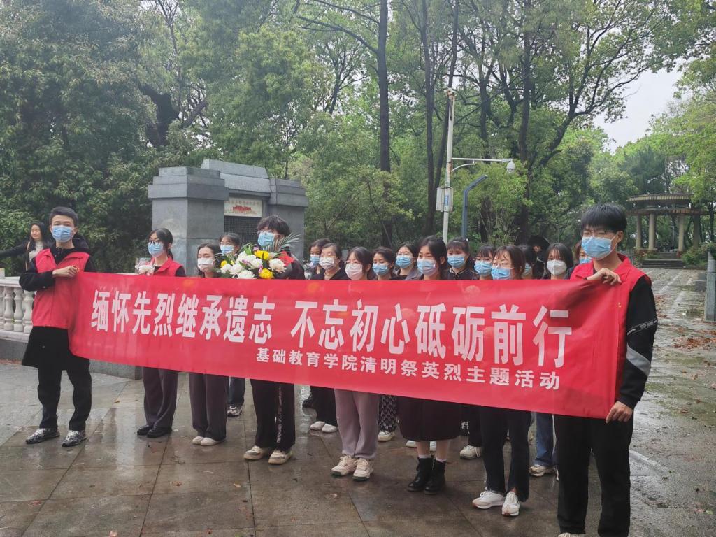 为了更好地传承光荣传统和红色基因,厚植爱国情怀,培养堪当民族复兴重任的时代新人。4月4日上午,在中华民族传统节日清明节来临之际,基础教育学院组织青年大学生前往九江市爱国主义教育基地、浔阳区革命旧址九江革命烈士纪念碑,开展2023年“缅怀先烈继承遗志、不忘初心砥砺前行”清明祭英烈主题活动。