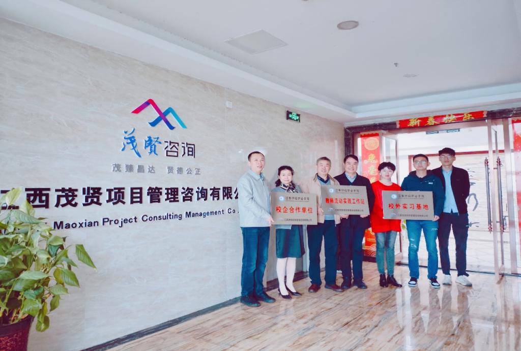 此次挂牌仪式是基于前期洽谈签订的产教协同合作框架协议下开展的首步工作,在江西茂贤项目管理咨询有限公司挂牌“江西财经职业学院校企合作单位”、“江西财经职业学院教师流动实践工作站”、“江西财经职业学院校外实习基地”。