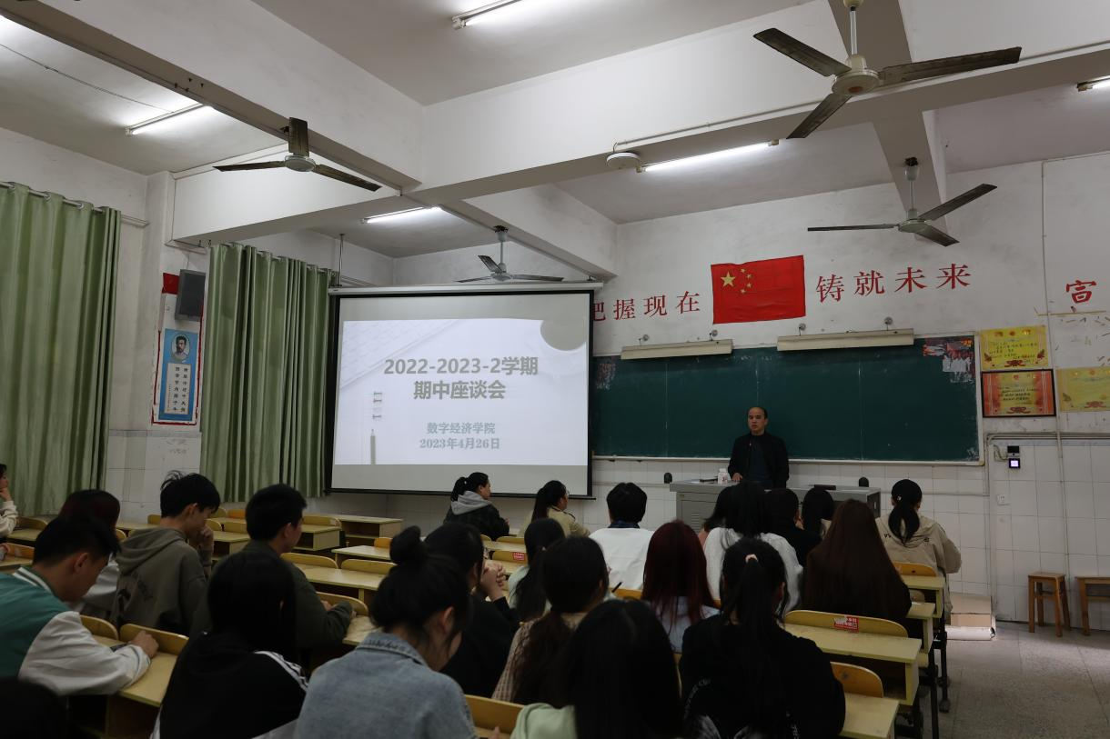 2023年4月26日下午,数字经济学院在教学楼107教室举办2022-2023-2学期期中教学座谈会。学院副院长李俊峰、谭宏,各教研室主任、学生管理和考务管理相关负责老师及21、22级各班学生代表参加了此次会议,会议由学院办公室主任张文悦主持。