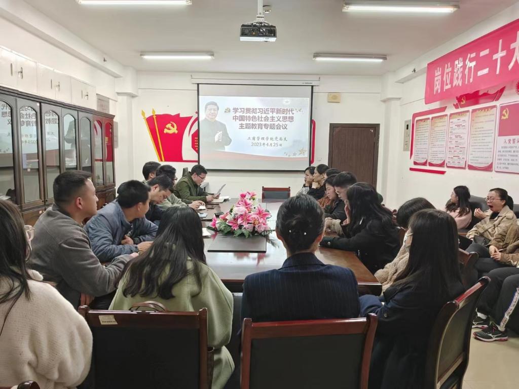 为学习贯彻习近平新时代中国特色社会主义思想,深入学习习近平总书记在主题教育工作会议上的重要讲话精神。4月25日下午,工商管理学院在综合楼903组织召开“学习贯彻习近平新时代中国特色社会主义思想”专题会议?;嵋橛晒ど坦芾硌г旱匙苤Ц笔榧钦孕麓逯鞒郑г喝褰讨肮げ渭踊嵋?。