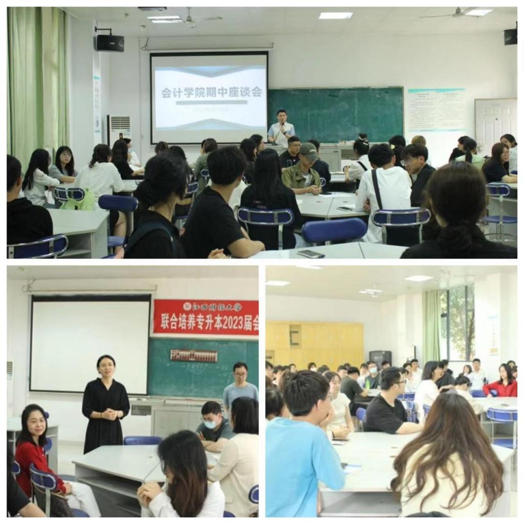 第三阶段——召开教学座谈会。为了更细致了解各年级学生的专业学习和生活状况,5月4日、5日下午以教研室牵头,分年级在东区教学楼3103会计基本技能实训室组织召开2022-2023学年第二学期期中教学座谈会,教研室主任及课程组教师代表出席座谈会,来自学院21、22级各班近120余名学生代表参加了座谈会。与会学生代表主要围绕目前专业学习、考证升学、校园活动、生活条件等几个方面存在的问题,积极发言。21级的学生重点就专升本考试、党团员发展、宿舍管理、选课管理等方面提出了意见和建议;22级学生则重点对教学资源和教学方法提出了意见和建议?;岷?,学院也将学生所反馈的信息与相关职能部门与有关院系进行了有效沟通,力争及时解决问题。