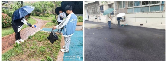 虽然恰逢雨水天气,但是丝毫没有影响基础教育学院志愿者们开展志愿服务的热情。在社区工作人员的带领下,同学们手撑雨伞清理社区生活垃圾、向居民发放各类公益宣传手册,倾听居民群众的声音,对居民提出的相关问题作出耐心解答,及时记录居民提出的意见和建议,呼吁大家积极践行社会主义核心价值观,为构建文明城市贡献一份力量。多次参与志愿服务活动的刘颖同学深有感触地说:“多场次、高频率的志愿服务活动,让我们更好地深入社区、接触社会,锻炼了大学生们参与社会公共事务的能力,增强了我们的公民意识,我对每次开展的志愿服务活动都充满期待!”