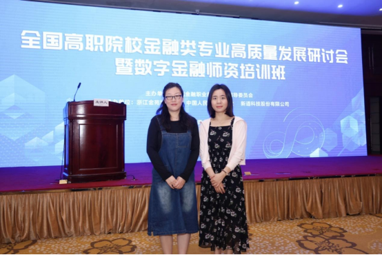 2023年5月27日至28日,由全国金融职业教育教学指导委员会主办,浙江金苑培训中心、中国人民大学出版社和新道科技股份有限公司联合承办的“全国高职院校金融类专业高质量发展研讨会暨数字金融师资培训班”于浙江杭州成功举行,财税金融学院党总支副书记王怡然和专职教师李雅琴参会学习。