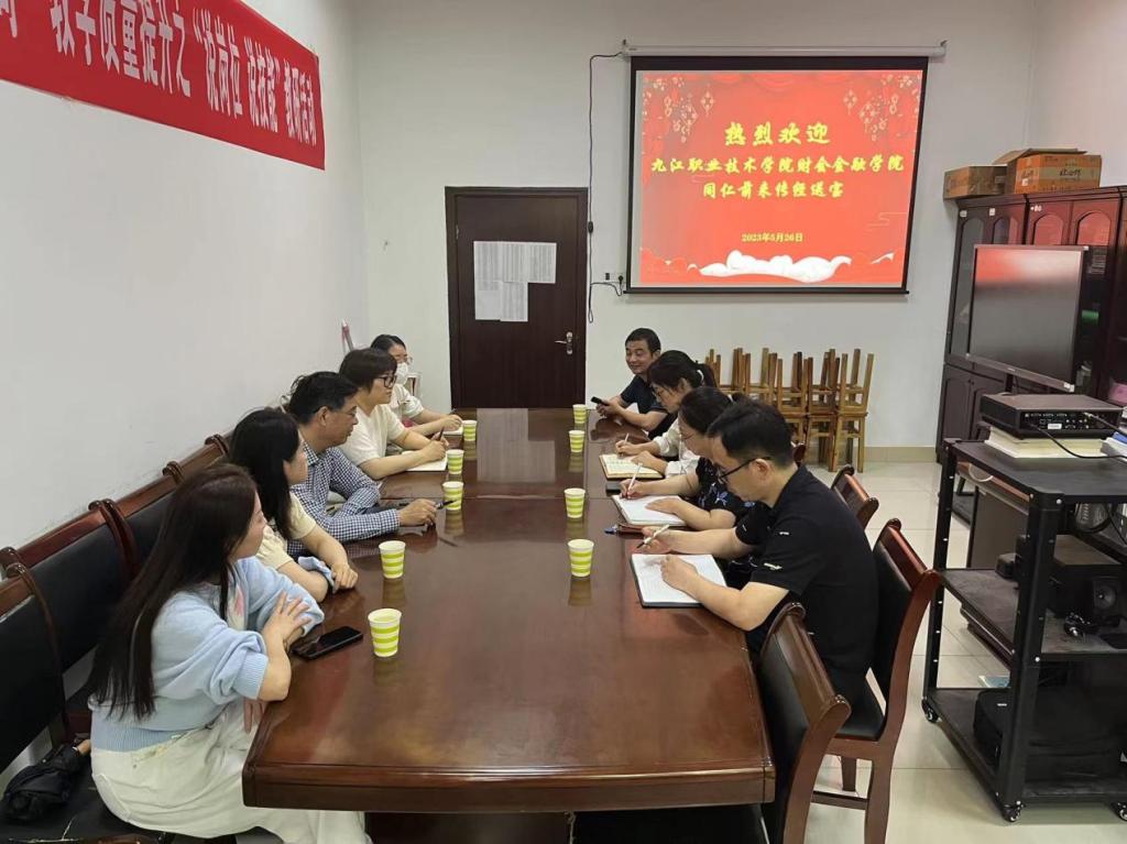 5月31日,九江职业技术学院财会金融学院院长周巍、副院长肖珣一行5人来我院考察交流。万凯院长、谭玉林、齐洁副院长、财务与审计教研室肖铁锋主任热情接待周院长一行,双方在红楼212办公室进行座谈交流。