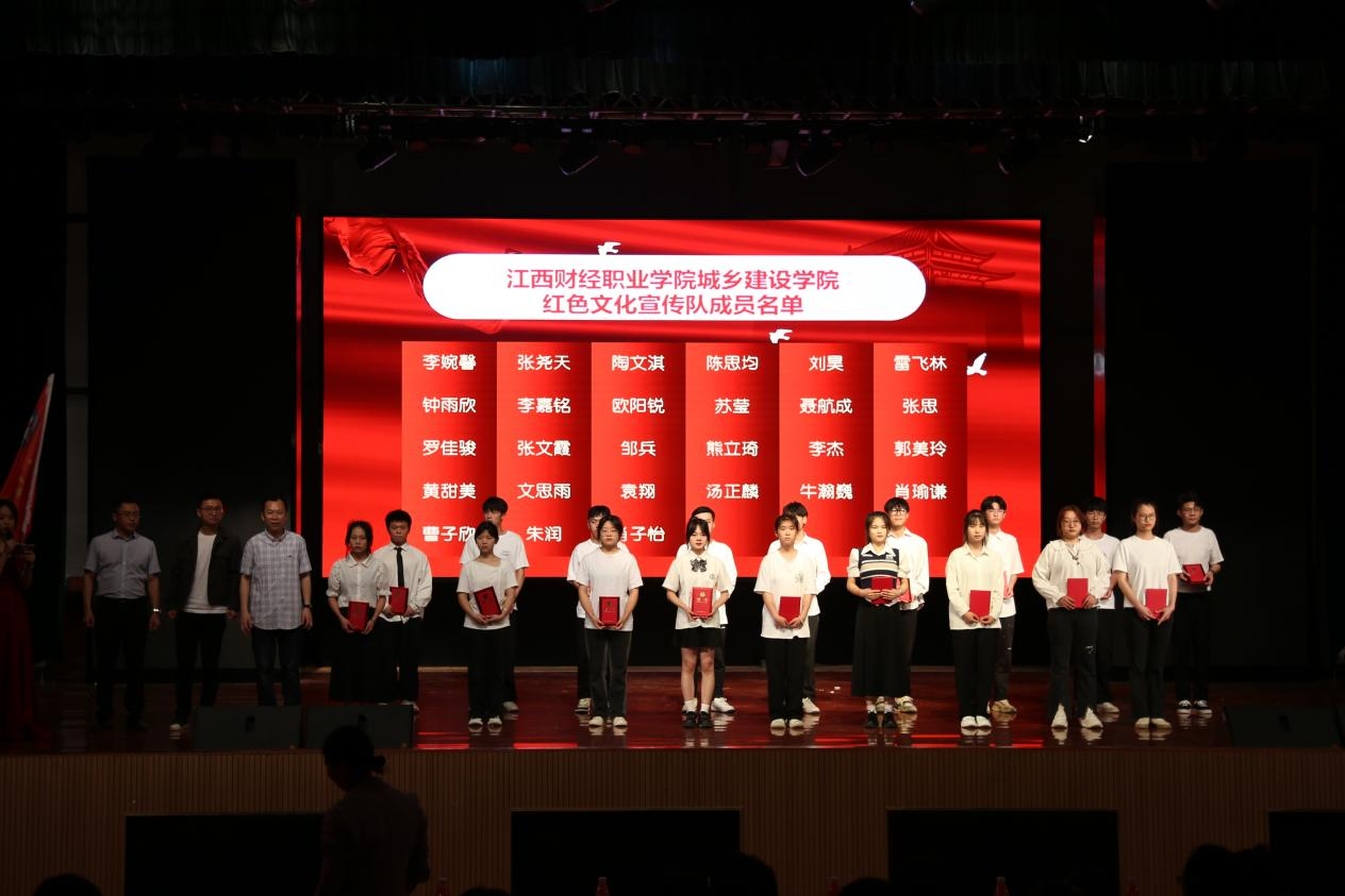 第一项议程为城乡建设学院副院长吕亨龙,副院长张乐,党总支副书记舒欣为江西财经职业学院城乡建设学院红色文化宣传队成员颁发聘书;