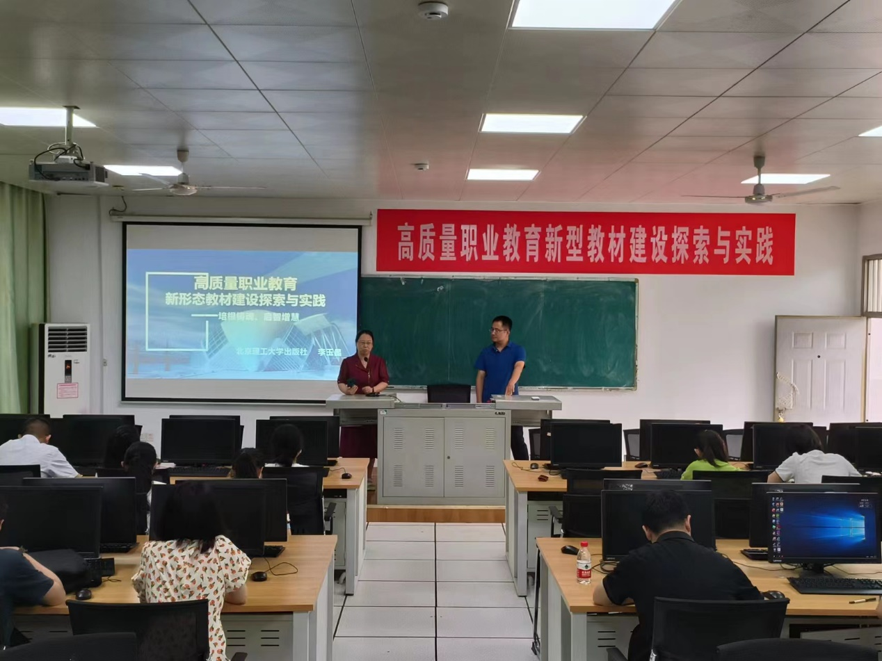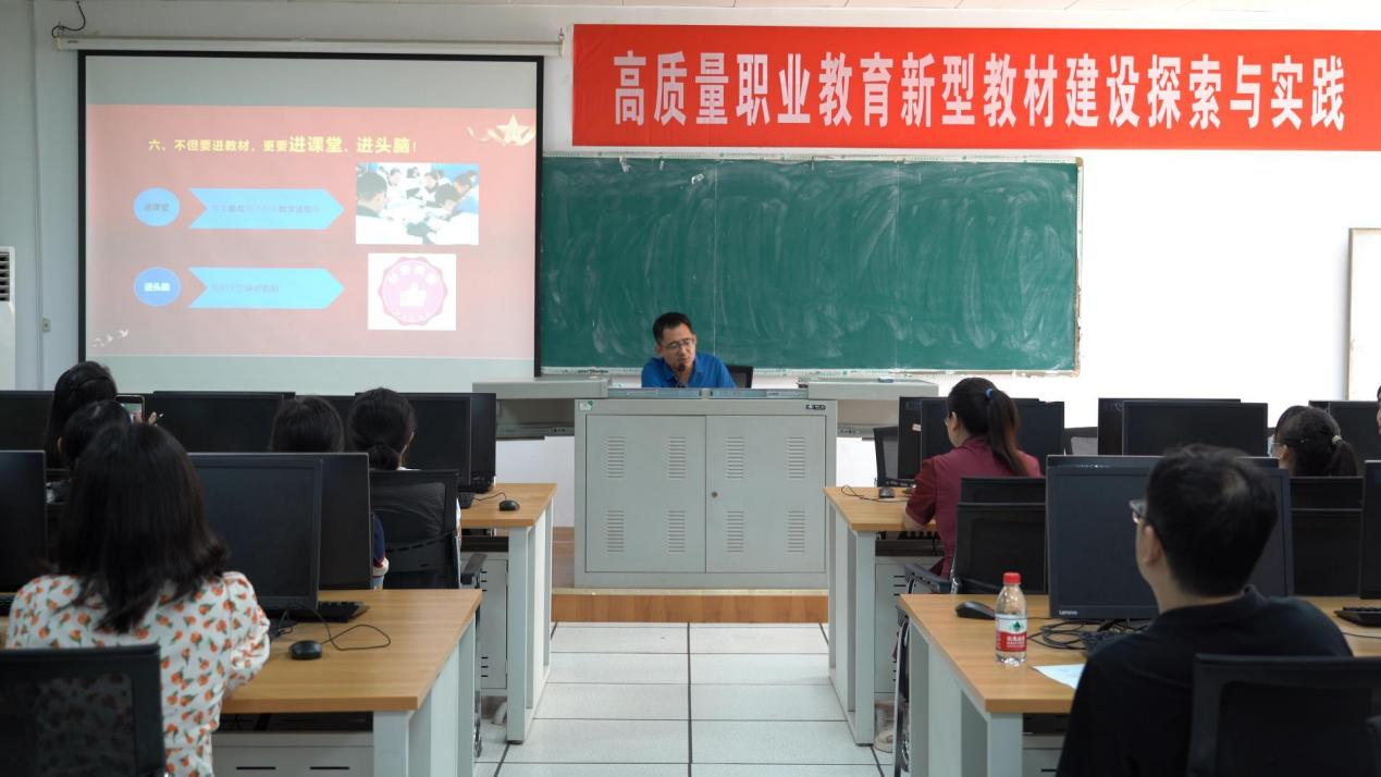 为了更好地推动教材建设高质量发展,打造国家级优秀教材,2023年6月7日下午,会计学院在东区实训楼ERP2教室开展集体教研活动。特别邀请北京理工大学出版社资深编审李玉昌,就高质量职业教育新型教材建设探索与实践进行专题讲座。会计学院院长万凯,副院长谭玉林、齐洁,以及会计学院专职教师出席本次教研活动。