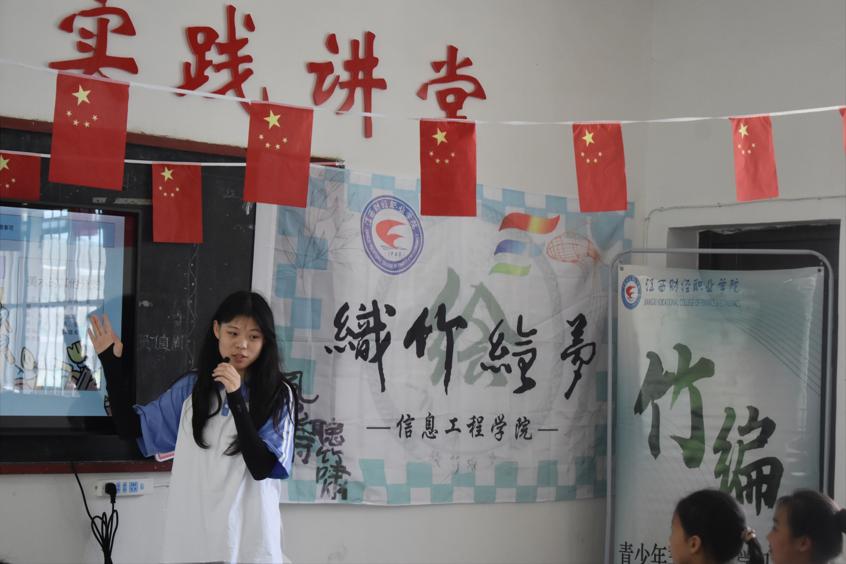 为了深入贯彻落实习近平总书记对非物质文化遗产保护工作的重要指示,扎实做好非物质文化遗产的系统?;?,推动中华文化更好走向世界。2023年7月5日,江西财经职业学院信息工程学院暑期“三下乡”织竹绘梦实践队在指导老师彭刚、金之成的带领下,来到新余市分宜县洞村乡开展暑期安全知识教育宣传、慰问当地敬老院、观看学习当地非遗传承人竹编制作工艺、开展非遗竹编走进课堂等活动,以文化下乡,弘扬非遗竹编,助力乡村振兴。