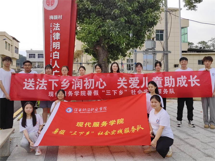 为深入学习习近平新时代中国特色社会主义思想,贯彻落实习近平总书记关于青年工作的重要指示,引导和帮助广大青年学生在社会课堂中“受教育、长才干、作贡献”,在观察实践中学党史、强信念、跟党走。7月3日—9日,江西财经职业学院现代服务学院暑假“三下乡”社会实践服务队来到九江市武宁县鲁溪镇梅颜村,开展以“送法下乡润初心,关爱儿童助成长”为主题的社会实践活动。