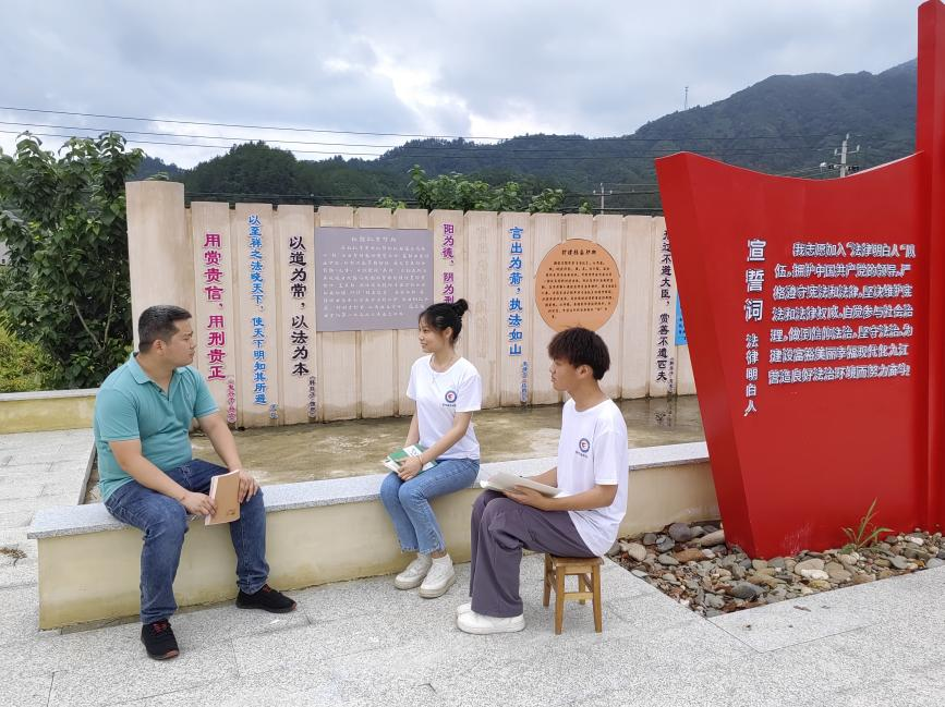 实践队贯彻落实全省“八五”普法规划,广泛开展《中华人民共和国民法典》《中华人民共和国未成年人保护法》等法律法规宣传教育,共建法治乡村。充分利用现有法治宣传资源——组织村民在“法律明白人”广场观看普法宣传视频,在梅颜村新时代文明实践站为村干部及普通村民进行“美好生活?民法典相伴”为主题的宣讲活动。有效交谈共“话”法治——为更好地了解本村法治现状,梳理矛盾纠纷化解中的难点痛点,队员同村干部进行面对面访谈,运用专业优势,提出相应可行建议;走访村组,队员深入基层,向村民发放普法宣传手册和书籍,对基本内容进行讲解,并且针对村民提出的问题进行耐心细致解答。乡村普法宣传着重加强了乡村“法律明白人”的培养和管理,发挥“法律明白人”在基层治理中的作用,各方通力合作,共建法治乡村!