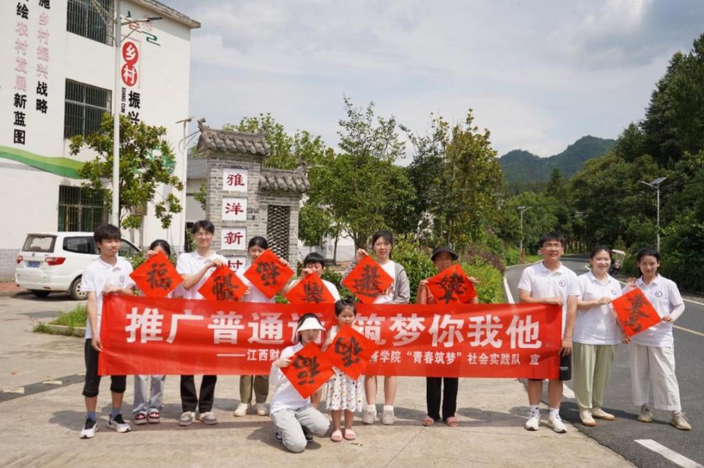 为深入学习贯彻习近平新时代中国特色社会主义思想,贯彻落实“习近平总书记与大学生在一起”学习分享活动要求,推动优质资源下沉新时代文明实践中心,2023年7月8日,江西财经职业学院“青年筑梦”社会实践队赴江西省九江市修水县复原乡雅洋村展开下沉式、进驻式的实践锻炼和学习体验,通过流动宣传、安全教育、志愿服务、专项调研、文艺汇演等方式走进乡村,让文明新风沐浴整个乡村大地。
