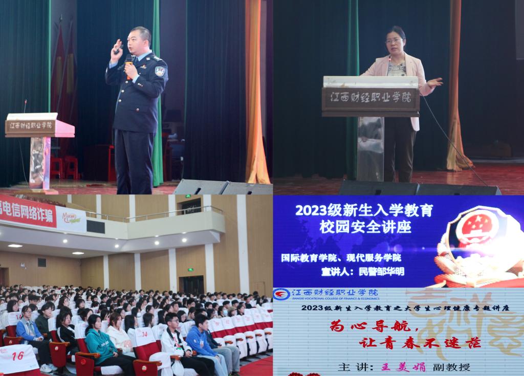 为使安全意识和心理健康教育深入人心,提高大学生安全防范意识和促进身心健康,现代服务学院和国际教育学院联合开展了安全知识讲座及心理健康讲座。10月10日上午,在英才交流中心举办了安全知识讲座,庐山南路派出所邹华明警官给新生上了一堂生动的安全教育课,他从电信诈骗案例警示入手,给大家做安全预警,提醒大家注意识骗防骗,提高反诈意识和技巧;我校心理咨询中心负责人王美娟副教授为2023级新生带来了《为心导航,让青春不迷茫》的专题讲座。她从我院人才培养目标出发,引出“你想成为什么样的人才”的思考,引导大家结合目标,做到优化自身心理品质,并且以真实案例,讲解心理健康的重要性,鼓励大家培养积极阳光心态,结合简单实用的心理自评工具,更好地了解自己的心理健康状况。两场讲座,从反诈宣传到心理健康教育,提醒学生注意提高安全意识和健全心理素养。安全、和谐、文明校园根植于新生内心。