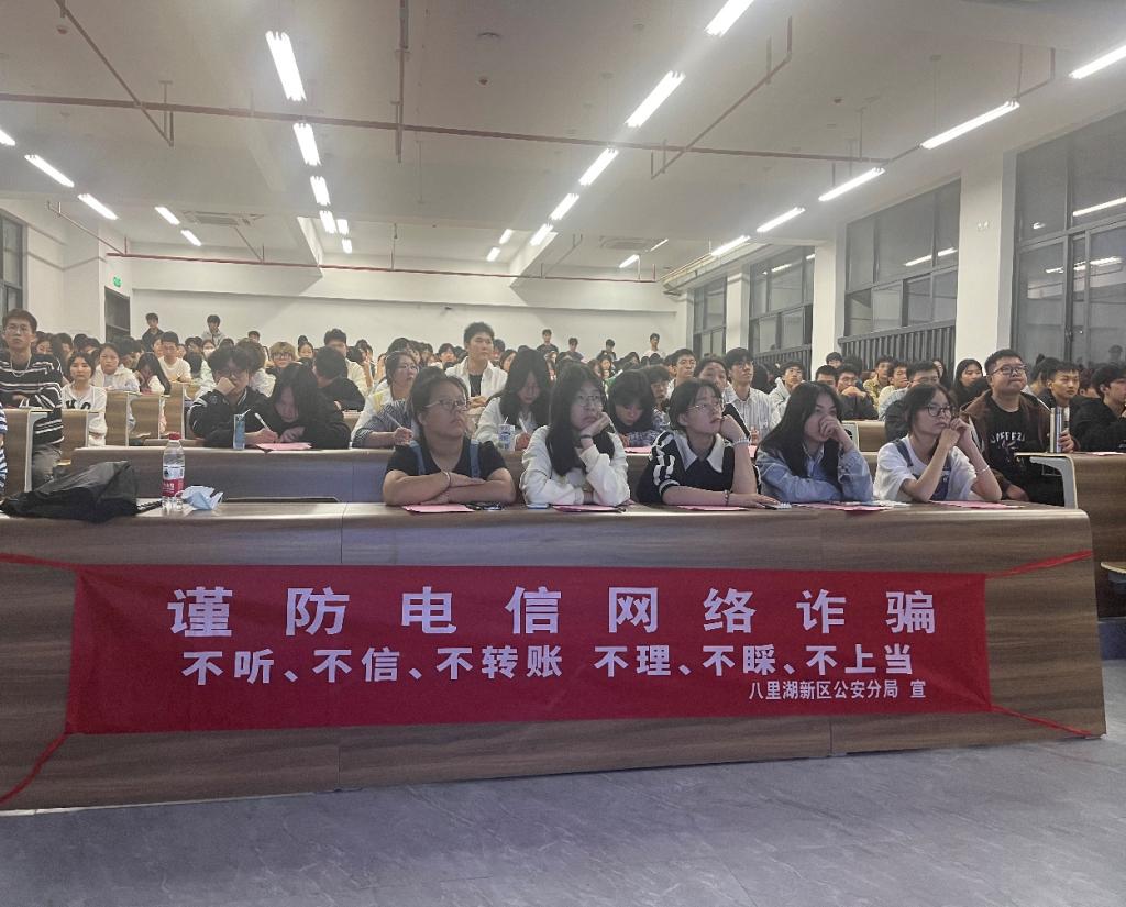 为提高全体2023级新生预防电信网络诈骗意识和能力,筑牢校园防诈防骗安全防线,10月13日,工商管理学院邀请八里湖刑侦大队反诈中队长陈永吉警官及九江经济技术开发区人民检察院吕洪伟检察官在我校八里湖校区开展“防范新型电信网络诈骗”安全教育专题讲座。工商管理学院党总支副书记赵新村、2023级新生260余人参加本次讲座。