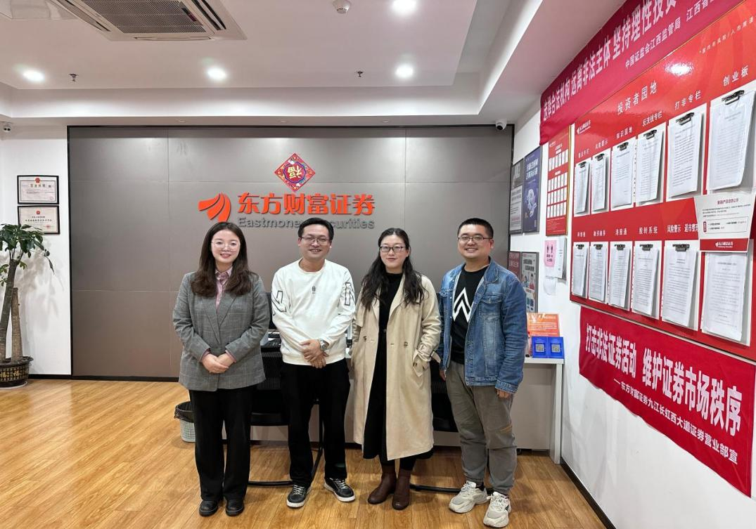 11月9日下午,财税金融学院党总支副书记王怡然、证券教研室主任罗舟、专职教师李绍一行三人前往东方财富证券九江营业部进行访企拓岗,受到了东方财富证券九江营业部总经理王剑的热情接待。