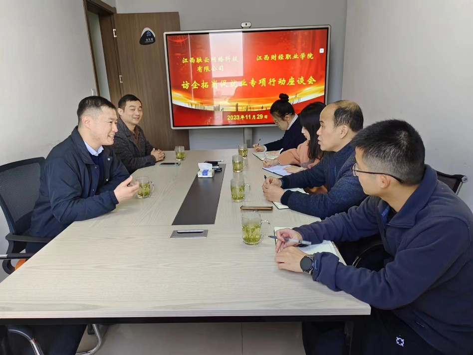 为扎实推进“访企拓岗”专项工作,拓宽毕业生就业渠道和促进专业发展,11月29日,数字经济学院副院长李俊峰带队前往江西融云网络科技有限公司开展访企拓岗,江西融云网络科技有限公司董事长肖叶飞进行了热情的接待。