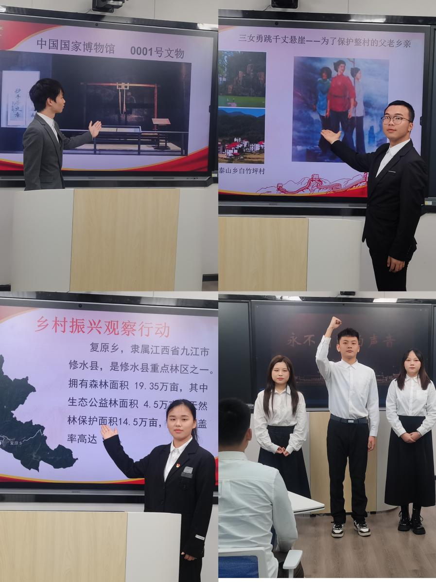 贺维维老师以“南陈北李、相约建党”导入,从伟大建党精神形成基础、深刻内涵及新时代青年实践要求三个方面开展授课,有机融入党的二十大精神、习近平总书记关于伟大建党精神重要论述及习近平总书记考察江西重要讲话精神;6位同学同台授课:曾禄祥同学为大家介绍了“革命英雄李大钊”的故事、柳翔同学为大家深情讲述“三女勇跳千丈悬崖”的故事,李佳昌等三名同学进行了红色诵读“永不消逝的声音”,李娟同学为大家分享了暑期“三下乡”社会实践活动成果,呈现了一堂别样的思政课。