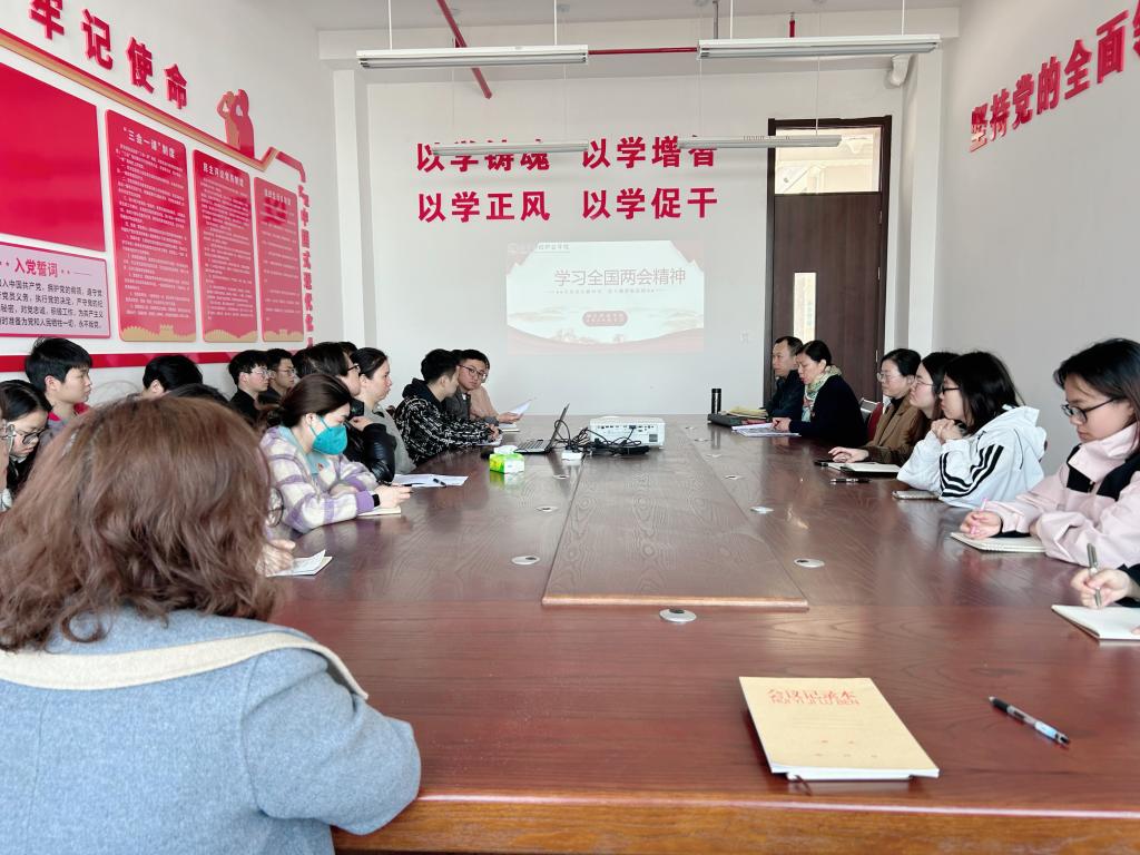 胡红霞强调,作为高职院校教师,我们要全面认识、深刻把握新质生产力的内涵与实践要求,主动适应新质生产力发展变化,积极推动职业教育创新改革,全面增强人才培养的社会适应性。随后,全体师生一起观看了十四届全国人大二次会议民生主题记者会——教育部部长怀进鹏答问实录,就“怎样加强拔尖创新人才的培养,以适应发展新质生产力迫切需要”等问题进行集体学习。
