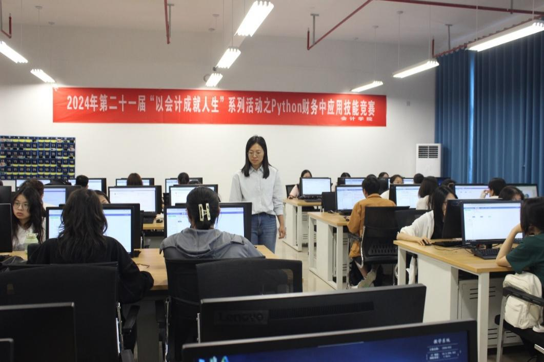 为激发学生学习积极性,提升学生Python财务应用技能水平,会计学院于2024年5月8日下午,在八里湖校区一教223实训室举行2024年第二十一届“以会计成就人生”系列活动之Python财务中应用技能竞赛,来自我院22级大数据与会计等专业的40余名学生参加了此次竞赛活动。