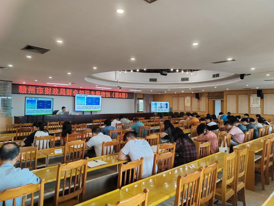 为进一步夯实我校社会服务职能,助力地方财政队伍建设,切实提升地方财政工作质量和水平,5月18日,会计学院社会服务团队成员谭玉林、邓鹏赴赣州市财政局开展第8期财会知识专题培训。赣州市财政局全体45周岁以下干部同志参加培训学习。