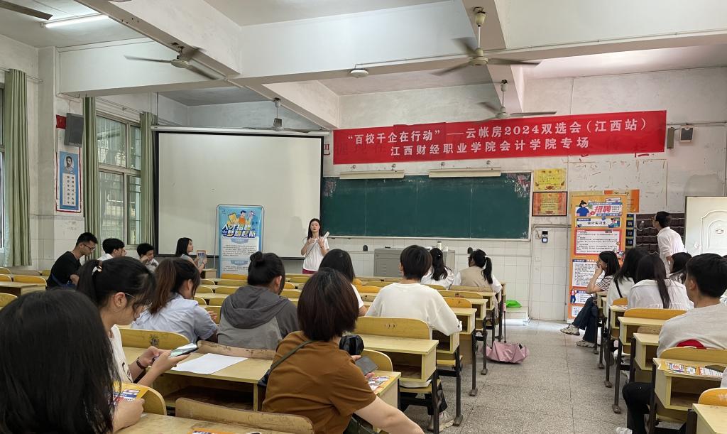 为了给我院2024届毕业生提供更多的专业对口的就业岗位,促进毕业生高质量充分就业。5月17日上午,我院联合云账房诚邀南昌乐兴财务管理有限公司、江西合祥财务有限公司、南昌聚锦天企业咨询服务有限公司、江西慧信财务股份有限公司、贞元代理记账有限公司等五家财务公司,在浔阳校区教学楼107教室举办“百校千企在行动”专场招聘会。此次招聘会共提供财务类专业岗位70余个。