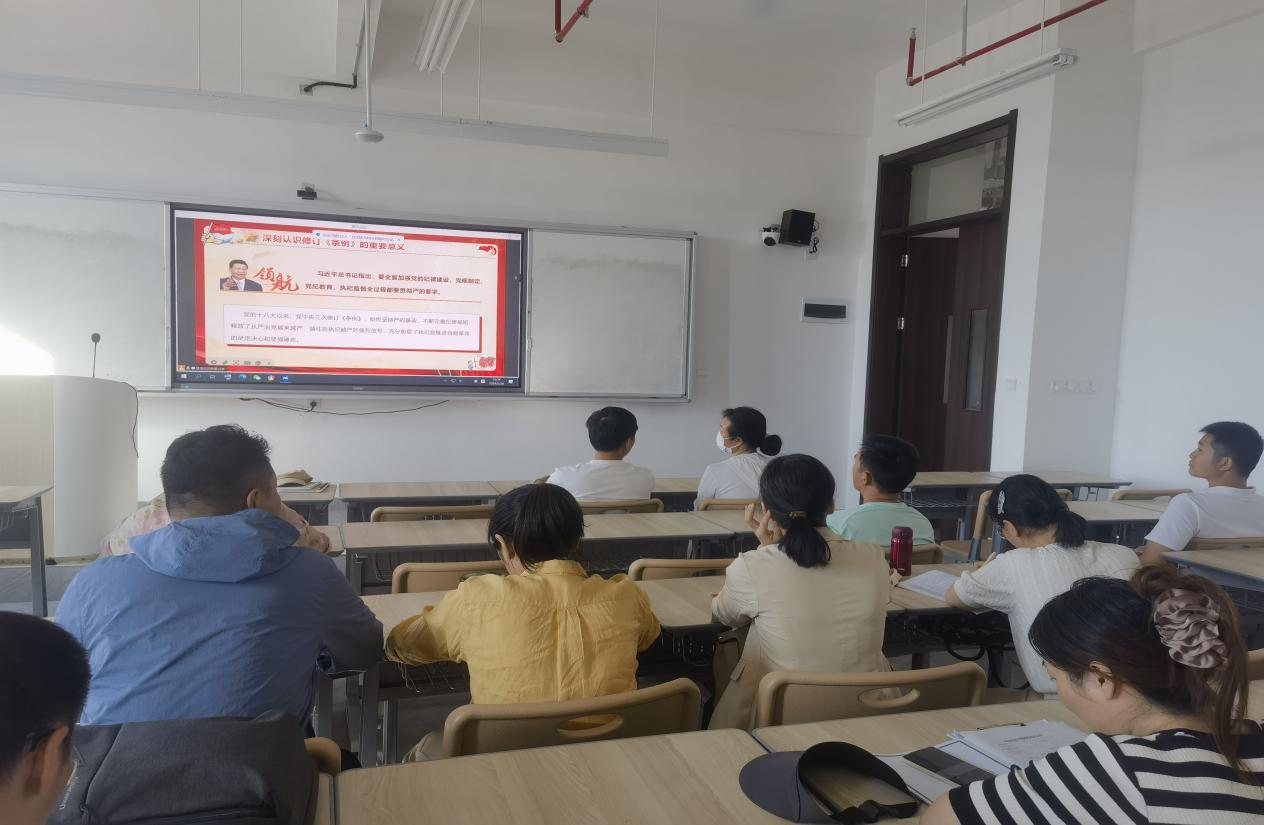 为深入推进全面从严治党,持续加强党的纪律建设,增强基础教育学院党员、教职工廉洁自律意识,以严明的纪律促进学院各项工作开展并取得高质量成效。5月28日下午,基础教育学院党总支负责人王美娟讲授题为“《中国共产党纪律处分条例》修订内容重点学习解读”党课,基础教育学院党政班子成员、全体教职工分别在浔阳校区线下和八里湖校区线上参加党课学习。