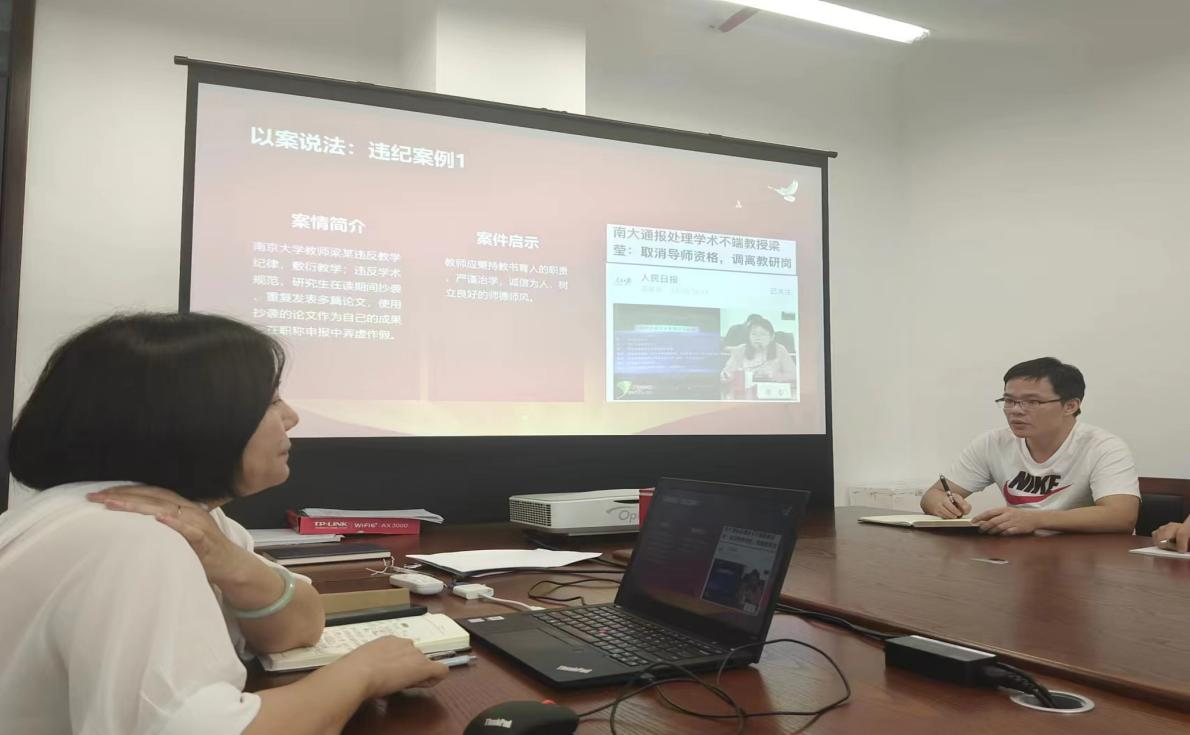 此次党课武丹从党纪严明的重要性、党的纪律体系、廉洁自律规定等三个方面进行了讲解,通过违纪案例的展示,教工党支部的老师们深刻认识到违反党纪的严重后果。武丹指出:党员干部和公职人员应时刻保持清醒头脑,增强拒腐防变能力,坚决抵制各种诱惑,做到清正廉洁,遵守党纪有助于提升党员个人素质、保持党的先进性和纯洁性,促进学院事业向前发展。武丹要求全体党员教师明确纪律体系和准则,在科研和教学工作中,必须坚守学术诚信,严格遵守学术规范,杜绝抄袭、剽窃等行为。