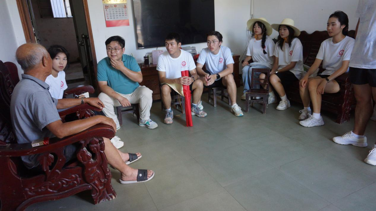 在流芳乡沙岗村,实践队拜访了当地的老党员,与老同志们共话“初心”。当地老支书,1976年入党的蔡细尼同志用朴实生动的语言讲述了自己的入党经历和沙岗村的发展历程,“事业是靠干出来的,等靠要解决不了问题”,老党员们自强不息、敢闯新路、艰苦奋斗的顽强品质,以及从曾经的一穷二白到如今秀美沙岗的今昔对比让实践队员们深有感触。