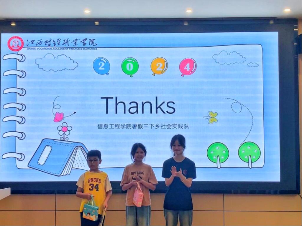 在这个充满希望的夏日里,江西财经职业学院信息工程学院暑期“三下乡”社会实践队以实际行动践行社会责任,走进九江市柴桑区城门街道城门乡贤馆,为乡村的孩子们带来了一场妙趣横生的教育活动,用爱心与责任照亮了孩子们的梦想之路。