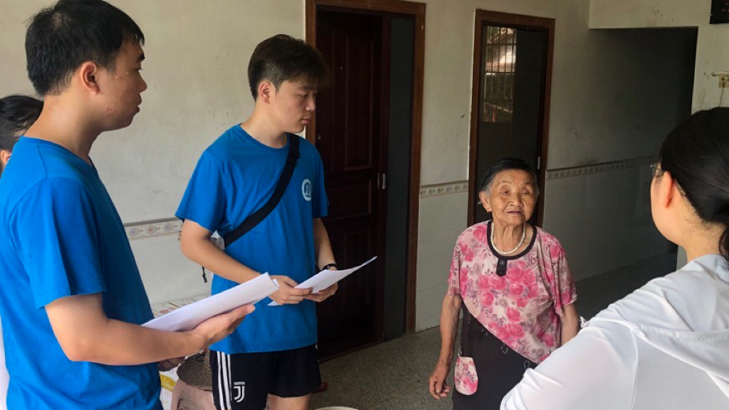 图为:“浔梦杨洲”社会实践队与驻村干部慰问老人。